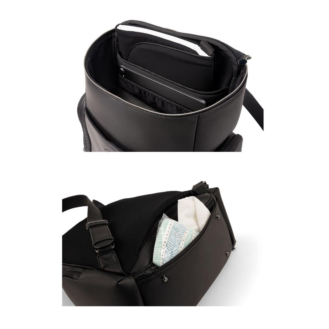 The Essential bag redefines everyday luxury with its chic leatherette styling and versatile parenthood functionality. Crafted as a multi-tasking backpack that also serves as a diaper bag, it features a laptop-friendly design with a thoughtful array of exterior and interior pockets, a handy changing pad clutch, and a luggage trolley sleeve for travel convenience.